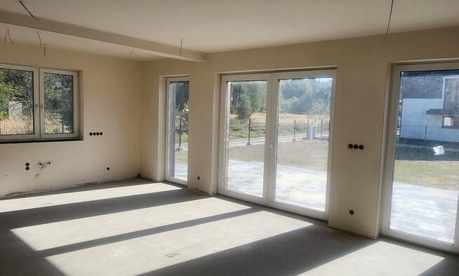 454m2; 3 pokoje (salon z kuchnią i kominkiem na dole, na piętrze: 2 pokoje; przybudówka; CO na pellet i klimatyzacja; wiata ...
